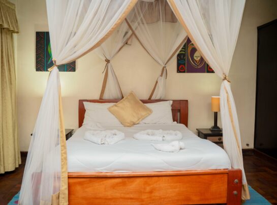 The Moon flower Suite at Kentmere Club, Limuru, is a luxurious escape designed for ultimate relaxation. This elegant suite features a spacious bedroom and a separate living area, offering privacy and comfort. The suite is adorned with tasteful decor and modern amenities, including fast WiFi, a HD flat TV, and a cozy fireplace. With stunning views of the lush gardens, the Moon-flower Suite is perfect for those seeking a serene and sophisticated retreat.